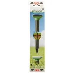 De ABS verjager met ultrasone geluiden van Nature werkt zowel voor mollen als voor woelmuizen en is uitgerust met een batterij op zonne-energie die 14 dagen meegaat wanneer hij volledig is opgeladen.