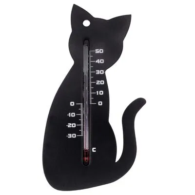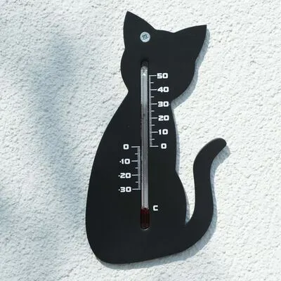 De mooie katvormige tuinthermometer van Nature is gemaakt van zwart ABS kunststof.