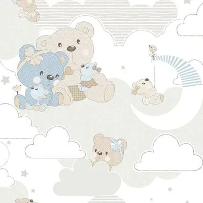 Dit Hug Bears behang in blauw en beige maakt deel uit van de Noordwand Mondo baby Hug Bears collectie. De patronen en mooie kleuren helpen je om op de slaapkamermuren van je kind een wereld van prachtige fantasie te projecteren.