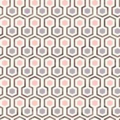 Deze Noordwand Good Vibes collectie, met behang met een roze en paars hexagonpatroon, staat bekend om zijn funky en kleurrijke patronen en krijtbehang.