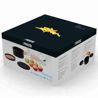 De praktische, 10-delige aerofryer-accessoireset van Princess geeft je de mogelijkheid om alle mogelijke manieren van koken met een aerofryer te verkennen en is geschikt voor de 182020 en 182021 aerofryers.