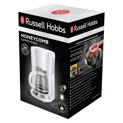 - Gestructureerd ontwerp: wil je je keuken een eigentijds tintje geven, zonder opnieuw te hoeven inrichten? Zoek dan niet verder dan dit Russell Hobbs Honeycomb koffiezetapparaat in wit. Het voegt stijl toe aan elk brouwsel dat je maakt.