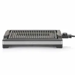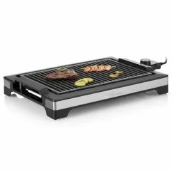 Met een bakoppervlak van 37 x 25 cm is de bakplaat ideaal om snel hamburgers te grillen. Hij heeft een smart ontwerp dat hem erg handig in gebruik maakt. De compacte grill past op elke tafel en is geschikt voor 4 personen. Hij beschikt over een verwijderbaar snoer met een regelbare thermostaat en cool-touch handvatten.