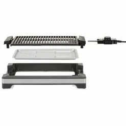 De gewenste temperatuur wordt snel bereikt dankzij het vermogen van 2.000 W. Het geïntegreerde vetdruppelsysteem verzamelt overtollig vet en alle onderdelen zijn vaatwasmachinebestendig, waardoor schoonmaken een fluitje van een cent is.
