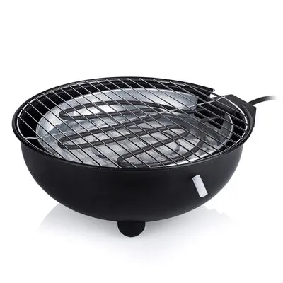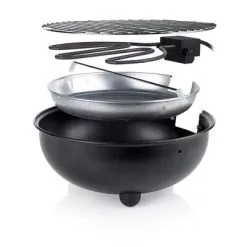 Hij is ideaal voor gebruik op balkons en binnenshuis. Een verwijderbare metalen bak onder het verhittingselement kan gevuld worden met water om het druppende vet op te vangen en om te voorkomen dat het gaat branden.