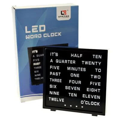 De LED-woordenklok van United Entertainment is een unieke klok! Op deze wandklok staan geen cijfers of wijzers die de uren en minuten aangeven, maar woorden.