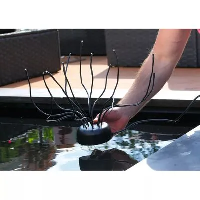 Deze onderwaterlampen kunnen onzichtbaar in de vijver worden geplaatst.In de avond zie je alleen het licht van de LED-lampen, die een reflectie van de sterrenhemel weerspiegelen op de vijver. De draden zijn flexibel en de posities van de LED-lampen kunnen versteld worden.