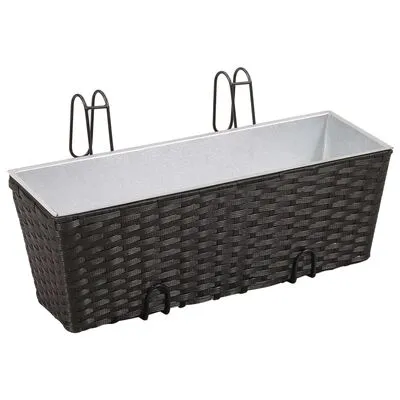 Deze prachtige hangplantenbakkenset bestaat uit 2 rattan potten en 2 uitneembare zinken potten. De rattan is gemaakt van duurzaam waterbestendig wicker waardoor deze plantenbakken een perfecte aanvulling op je buitenruimte zijn. Ze passen op bijna alle balkonrailings.