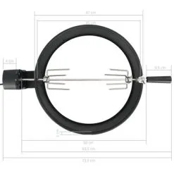 De op hoge temperatuur geëmailleerd stalen behuizing en de roestvrijstalen staaf, vork en roller geven deze ring stevigheid en duurzaamheid. De ronde stalen ring past op grills tot 47 cm in diameter. De krachtige motor zorgt voor een stabiele en consistent gelijkmatige rotatie, waardoor het vlees aan alle kanten perfect wordt bereidt. Dit slimme gadget is gemakkelijk schoon te maken en eenvoudig te monteren met het inbegrepen bevestigingsmateriaal.