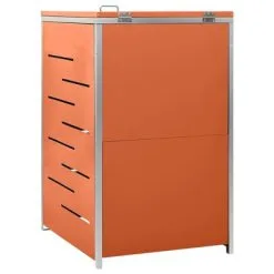 Deze vuilnisbakschuur is gemaakt van gegalvaniseerd stalen panelen en een roestvrijstalen frame, waardoor hij buitengewoon stevig en roestbestendig is. Het holle ontwerp zorgt voor luchtcirculatie en voorkomt nare geurtjes in de berging, en het vergrendelingssysteem zorgt voor een veilige opslagplek. Het handige deksel en de veren maken het gemakkelijk om de afvalbak te plaatsen en te verwijderen!