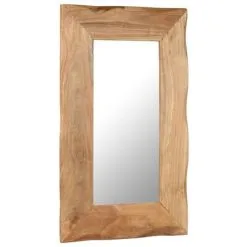 Het frame is gemaakt van stevig en duurzaam massief acaciahout, waardoor deze unieke spiegel elke ruimte een retro uitstraling geeft. Het perfecte vakmanschap van het massieve acaciahout geeft deze prachtig ontworpen spiegel meer charme. De spiegel kan worden gebruikt in de badkamer of hal, en kan dienen als een make-up-spiegel, een decoratiespiegel of een halspiegel. Er is geen montage vereist. Daarnaast kan hij zowel horizontaal als verticaal worden geplaatst dankzij de dubbele hangers aan de achterkant van de spiegel.