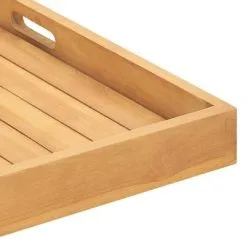 Dit klassieke dienblad is gemaakt van extreem duurzaam hard teakhout. Het hout is gewaterd, in de oven gedroogd en vervolgens fijn geschuurd om het zeer glad uiterlijk te geven. Teakhout staat bekend om zijn uitzonderlijke kracht en weersbestendigheid en is een perfecte keuze als je een duurzaam houten dienblad wilt aanschaffen. Het blad kan ook gebruikt worden als lichtgewicht en karakteristieke woonaccessoire om spullen op weer te geven.