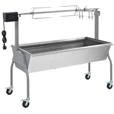 Deze riante rotisserie barbecue is ideaal voor het grillen van hele speenvarkens, kippen, wild en andere grote vleessoorten. Bij de slagers barbecue wordt een groot draaispit meegeleverd. Het draaispit wordt aangedreven via een elektrische motor en draait automatisch, zodat u amper naar de barbecue om hoeft te kijken. De rotisserie BBQ heeft een groot grill oppervlak en is daarmee ook zeer geschikt voor het bereiden van kleinere stukken vlees. Tevens is de barbeque voorzien van 4 wielen met remblokkeringsfunctie, waardoor de slager BBQ gemakkelijk te verplaatsen is.