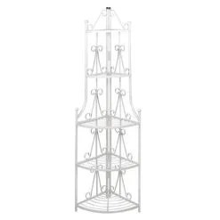 Dit plantenrek in de kleur wit heeft een rozen patroon . Het is een perfecte keuze om uw planten erop te plaatsen en het zal zeker een eye – catcher zijn in uw tuin , patio of terras .