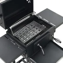 Met houtskool als brandstof is deze barbecue geschikt voor grillen, braden en roken. Met de geïntegreerde thermometer op de kap kan je de temperatuur in de gaten houden. Dankzij de gepoedercoat stalen behuizing heeft onze barbecue een strak en stijlvol ontwerp en is hij zeer duurzaam. Hij heeft 2 geëmailleerde roosters en een stevige kap. Twee inklapbare bijzettafels bieden extra ruimte voor het bereiden van sauzen of je favoriete bijgerechten. De 2 zwenkwielen zorgen ervoor dat de grill eenvoudig te verplaatsen is. Deze barbecue is onmisbaar voor je buitenactiviteiten!