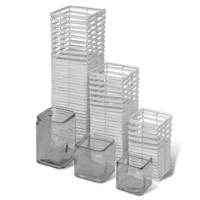 - De grootste (L x B x H): 16 x 16 x 54 cm (totale afmetingen); 12 x 12 x 18 cm (glas)