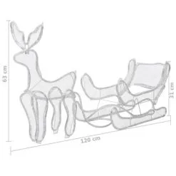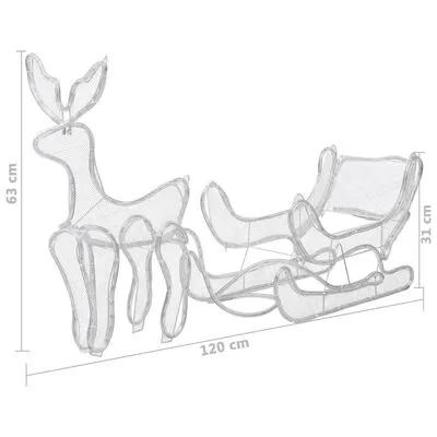 Deze opvallende kerstverlichting in de vorm van een rendier en slee, met LED’s en mesh, is de perfecte decoratie.