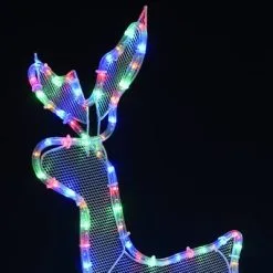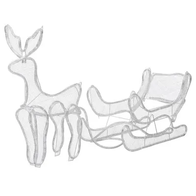 Deze opvallende kerstverlichting in de vorm van een rendier en slee, met LED’s en mesh, is de perfecte decoratie.