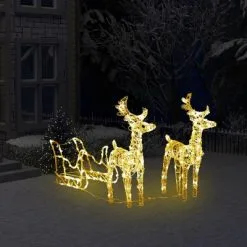 Verfraai je tuin of huis met deze unieke versiering. Deze 2 rendieren en slee brengen in combinatie met koudwitte lampjes de ware kerstsfeer naar voren!