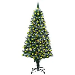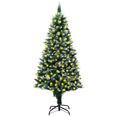 Deze kerstboom heeft puntige takken met witte sneeuw op de uiteinden waardoor hij zeer vol is. De naaldtakken en dennenappels zijn inbegrepen en kunnen in elke gewenste richting worden geplaatst. Deze kerstboom kan elk jaar worden gebruikt, waardoor hij een zeer voordelige keuze is in vergelijking met een echte boom. Hij heeft ook een metalen basis voor stabiliteit. De energiezuinige LED-verlichting brandt prachtig en zorgt voor een gezellige kerstsfeer.