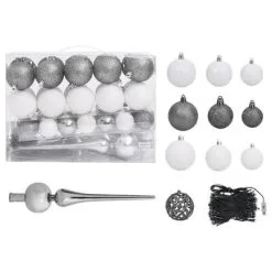 - Kleur kerstbal: glanzend wit, glitterwit, glanzend grijs en glittergrijs