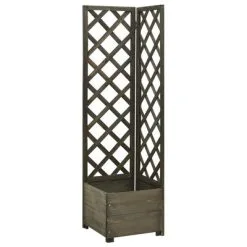 Deze plantenbak, gemaakt van massief vurenhout, is stevig en geschikt voor buitengebruik. Hij heeft een bloembak waar een groot aantal groene planten en bloemen in passen. Bovendien biedt het latwerk uitstekende ondersteuning voor klimplanten. Dankzij de speciale vorm past de tuinbak in elke hoek.