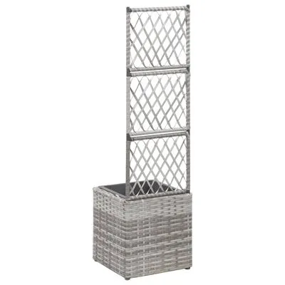 Deze verhoogde poly rattan plantenbak met 1 uitneembare pot heeft een ingebouwd latwerk en voegt een vleugje charme toe aan elke buitenruimte.