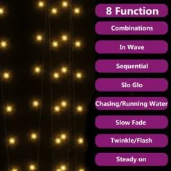 Het efficiënte solarpaneel zet overdag zonlicht om in elektrische energie, die wordt opgeslagen in de ingebouwde accu. De lichtjes gaan ’s nachts automatisch branden. Daarnaast is de lichtslinger uitgerust met 200 energiebesparende LED’s, waardoor een magische lichtprestatie ontstaat. Hij heeft 8 verschillende lichteffecten: combinatie, golven, sequentieel, langzaam gloeiend, knipperend, langzaam vervagend, fonkelend en continue verlichting. Dit is een geweldige decoratie om binnen- en buitenruimtes te verlichten!