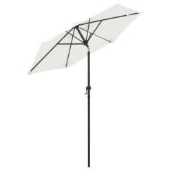 Dankzij de handslinger en het kantelbare ontwerp is de parasol inklapbaar en draagbaar. Het parasoldoek is gemaakt van uv-beschermend anti-vervagingspolyester dat je optimaal beschermt tegen de zon. De robuuste aluminium paal met poedercoating zorgt er in combinatie met 6 stevige, metalen baleinen voor dat de parasol extra stevig is en jarenlang gebruikt kan worden.