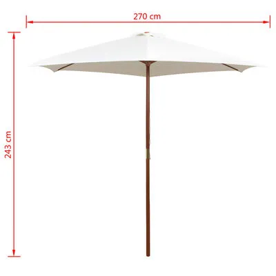 Deze elegante houten parasol, die in je bestaande parasolvoet of in het parasolgat van een tafel kan worden geplaatst, is de perfecte keuze om schaduw te creëren en je te beschermen tegen de schadelijke uv-stralen van de zon tijdens het lezen of drinken van koffie met je familie of vrienden op je terras of in de tuin.