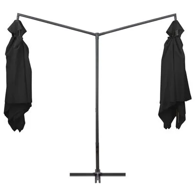 Deze elegante dubbele parasol is perfect om wat schaduw te creëren en jezelf te beschermen tegen de schadelijke uv-stralen van de zon. Het kenmerkende dubbele parasolontwerp maakt hem de blikvanger van je achtertuin!