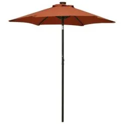 Dankzij de handslinger en het kantelbare ontwerp is de parasol inklapbaar en draagbaar. Het parasoldoek is gemaakt van uv-beschermend anti-vervagingspolyester dat je optimaal beschermt tegen de zon. De robuuste aluminium paal met poedercoating zorgt er in combinatie met 6 stevige, metalen baleinen voor dat de parasol extra stevig is en jarenlang gebruikt kan worden. Deze parasol heeft 12 LED’s die je buitenruimte verlichten en een comfortabele, romantische sfeer creëren zodra de zon ondergaat.