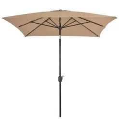 Het parasoldoek is gemaakt van uv-beschermend en anti-vervagend polyester waardoor het je optimale bescherming tegen de zon biedt en het gemakkelijk schoon te maken is. De paaldiameter is 38 mm waardoor hij in een bestaande voet of in het midden van een tafel geplaatst kan worden. Het exclusieve ontwerp van deze parasol stelt je in staat om de parasol te kantelen om zo de zon te blokkeren terwijl deze langzaam richting de horizon beweegt. De sterke stalen paal en de 6 duurzame baleinen maken de parasol zeer stabiel en duurzaam. Onze tuinparasol kan eenvoudig geopend en gesloten worden dankzij het zwengelmechanisme. Het product is eenvoudig te monteren.