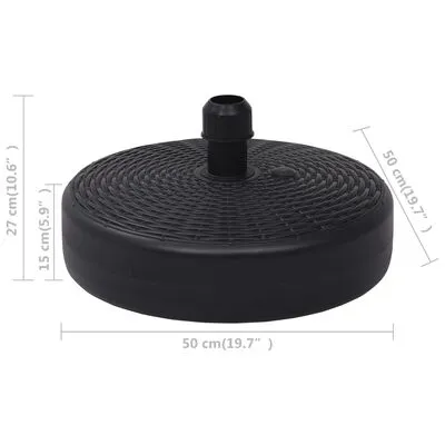 Deze parasolvoet met rattan patroon is ontworpen om te worden gevuld met water of zand. Hij dient als een stevige en stabiele basis voor je parasol.