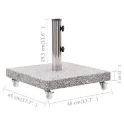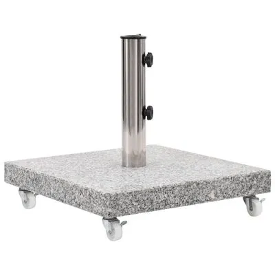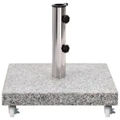 Deze parasol gewichtsplaat is gemaakt van sterk graniet en heeft een gewicht van 30 kg, waardoor hij extreem stabiel is en ervoor zorgt dat je parasol zelfs stilstaat bij winderig weer. De parasolvoet heeft 2 vergrendelingsbouten die de parasolpaal op zijn plaats houden. Er is een adapter inbegrepen, waardoor de voet geschikt is voor parasolpalen met een diameter van 38 / 48 mm. De 4 wieltjes zorgen dat de parasolvoet eenvoudig verplaatst kan worden.