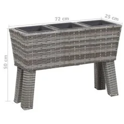 Deze mooie verhoogde tuinbakkenset bestaat uit 1 poly rattan plantenbak met poten en 3 kunststof potten.
