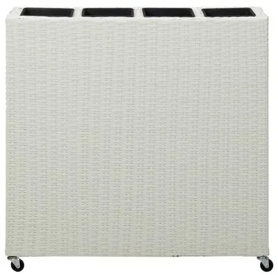 Deze plantenbak is gemaakt van duurzaam, waterbestendig poly rattan en is een perfecte aanvulling op je buitenruimte. De strakke weefstructuur zorgt voor een gladde afwerking en uitstekende stabiliteit. In de 4 potten kun je allerlei levendige groene planten en bloemen planten. Bovendien zorgt het ontwerp met 4 wielen voor gemak. Maak je klaar om je tuin, terras en balkon te decoreren met onze prachtige plantenbakken!