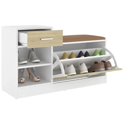 De schoenenopberger is gemaakt van spaanplaat, waardoor hij een verfijnde uitstraling heeft en stabiel en duurzaam is. Dankzij de kunstleren zitting is hij gemakkelijk schoon te maken en kan je comfortabel zitten tijdens het aan- of uittrekken van je schoenen. Dit opslagbankje biedt veel bergruimte en is perfect voor in hallen, gangen en andere woonruimtes.