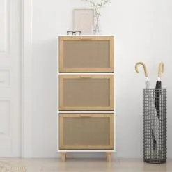 - Voldoende opbergruimte: dit schoenenrek heeft 3 lades, waardoor hij over voldoende ruimte beschikt om je schoenen geordend en binnen handbereik op te bergen. Ook voegt het natuurlijke rattan weefontwerp in de lade extra schoonheid toe.