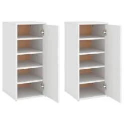 Deze schoenenopbergers zijn duurzaam en stevig. Ze hebben een eenvoudig ontwerp, dat perfect in je interieur past. Elk schoenenrek heeft 5 schappen, waardoor er voldoende ruimte is om je schoenen goed georganiseerd te houden. Deze schoenenkasten kunnen op de grond worden geplaatst of aan de muur worden gehangen. Dankzij de deur die links of rechts kan worden geopend, beschermen de meubelen je schoenen tegen stof. Ze zijn gemakkelijk schoon te maken met een vochtige doek.