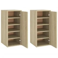 Deze schoenenopbergers zijn duurzaam en stevig. Ze hebben een eenvoudig ontwerp, dat perfect in je interieur past. Elk schoenenrek heeft 5 schappen, waardoor er voldoende ruimte is om je schoenen goed georganiseerd te houden. Deze schoenenkasten kunnen op de grond worden geplaatst of aan de muur worden gehangen. Dankzij de deur die links of rechts kan worden geopend, beschermen de meubelen je schoenen tegen stof. Ze zijn gemakkelijk schoon te maken met een vochtige doek.