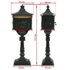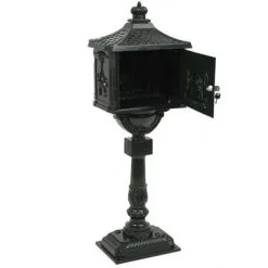 Onze prachtige staande brievenbus in antieke stijl vormt een praktische en decoratieve toevoeging aan de tuin of entree, thuis of op je werk.