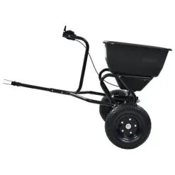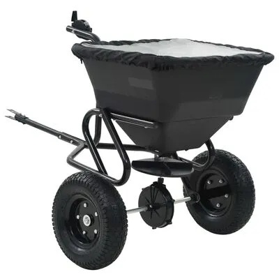 Deze sleep strooiwagen zal je niet alleen helpen om in de winter zout te strooien op je opritten en looppaden, hij kan in de lente en de herfst ook worden gebruikt bij het zaaien en bemesten.