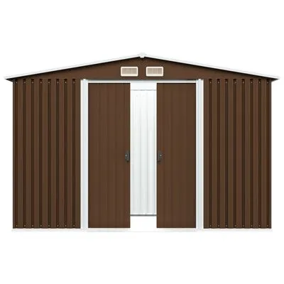 Deze opbergschuur is voorzien van ventilatieopeningen, die voor een uitstekende ventilatie zorgen en de ophoping van vocht en geur in de schuur verminderen. De dubbele schuifdeuren aan de voorkant zorgen voor gemakkelijke toegang. Dankzij het corrosiebestendige, gegalvaniseerde staal is de gereedschapsschuur robuust en duurzaam. De levering bevat ook een stalen fundering die extra stabiliteit biedt.