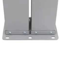 Het scherm is gemaakt van uv-, water- en scheurbestendig polyester. De cassette is gemonteerd op een stevige stalen voet in verticale positie en het uittrekbare scherm kan eenvoudig recht uit de cassette worden getrokken. Het scherm heeft een automatische terugrolfunctie. De levering bevat bevestigingsaccessoires.