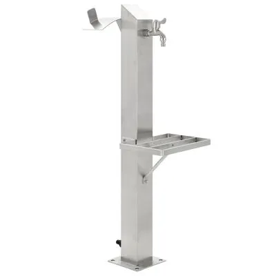 Deze vrijstaande waterkolom heeft een kraan en is een geweldige toevoeging aan je tuin. Of hij nu wordt gebruikt voor het bewateren van bloemen of het wassen van handen, je kunt eenvoudig water naar buiten leiden met deze roestvrijstalen waterkolom.