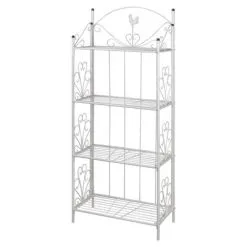 Het witte plantenrek met rozen patroon, is perfect om er uw planten op te zetten. Het rek heeft 4 etages en is 153 cm hoog. Het rek is gemaakt van hoogwaardig staal voor de duurzaamheid van het rek. De poedercoating maakt het plantenrek roestvrij en verhoogt de levensduur van het product.