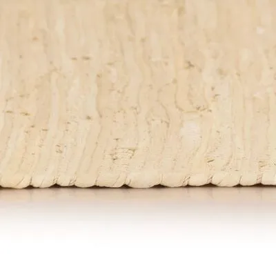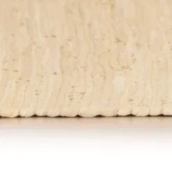 Het vloerkleed is handgemaakt van katoenen strips op basis van een traditioneel Aziatische weefmethode. Katoen is een natuurlijk product en omdat we gerecycled katoen gebruikt hebben, is het tapijt duurzaam geproduceerd.