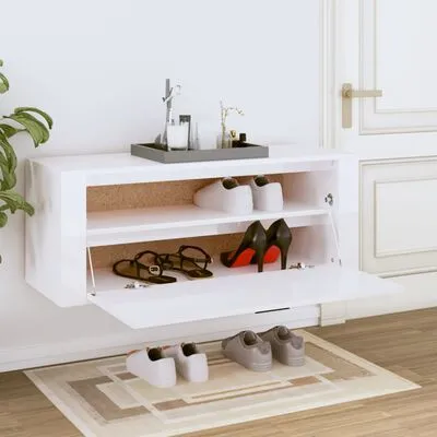 Met deze moderne en compacte schoenenkast voor aan de wand hoef je je nooit meer te ergeren aan rondslingerende schoenen!