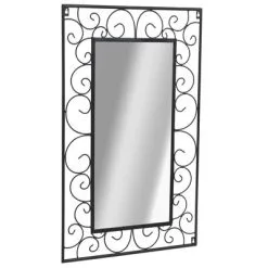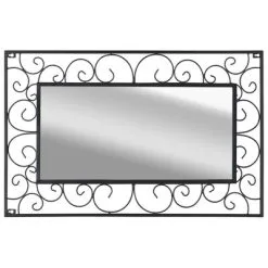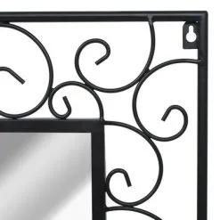 Deze wandspiegel is ontworpen met een gepoedercoat stalen frame dat is versierd met prachtige krulwerk details die je interieur een elegante uitstraling geven. Dankzij de voorgeboorde gaten in de drie hoeken kan de spiegel zowel verticaal als horizontaal aan de muur worden gemonteerd.